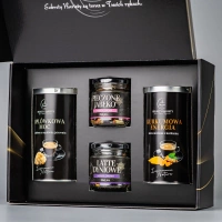 Zestaw prezentowy kaw i herbat Sekrety Baristy – Kurkuma, Soplówka, Pieczone Jabłko, Latte Dyniowe